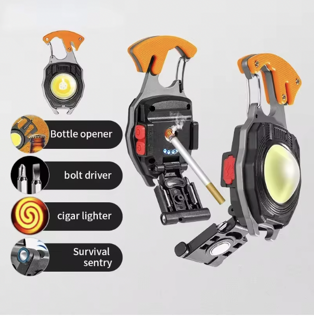 ميدالية المفاتيح العجيبة 6 في 1: الكشاف الخارق والولاعة الذكية